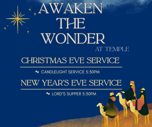 Each week Temple livestreams its 10:00AM Sunday Worship Service and Wednesday Night Study and post the video here, on our facebook page and to our YouTube page. Tune in to worship with us as we seek to grow in grace together as a community.